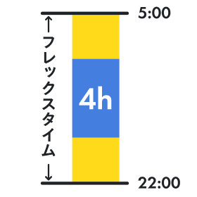 ±20時間月内で労働時間に±20時間の幅を設け、各自で労働時間を調整することが可能です。