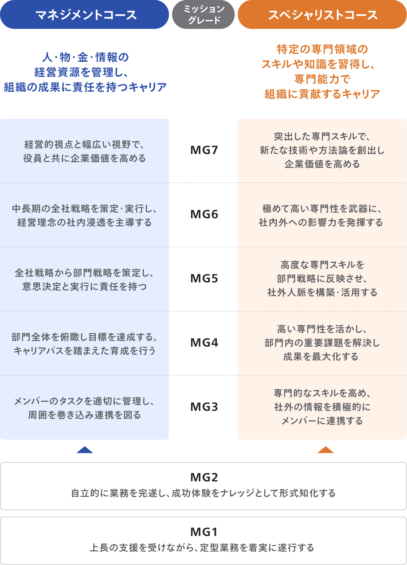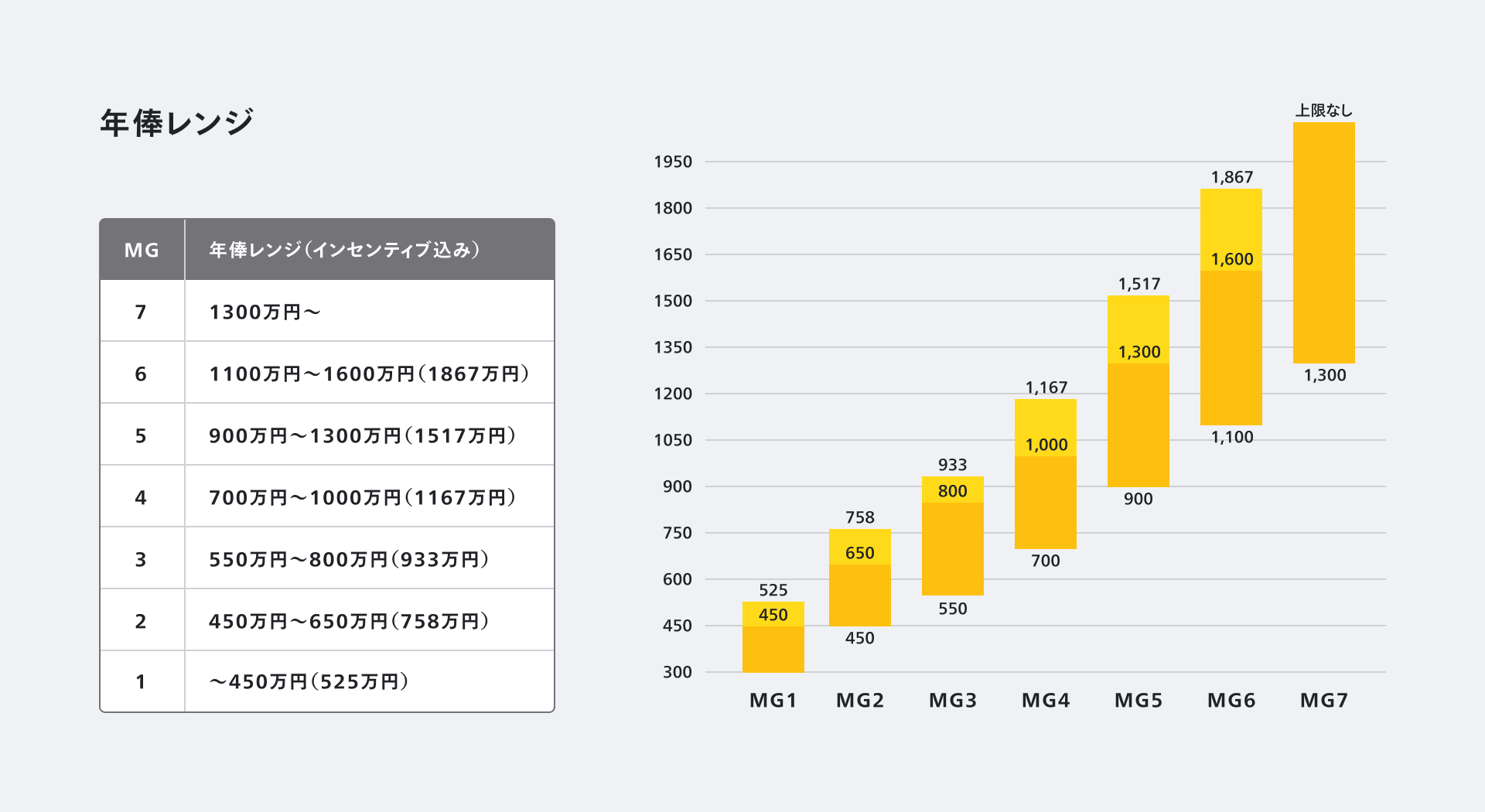 また、コース別に定義された7段階のミッショングレードにより、年俸レンジが決定します。